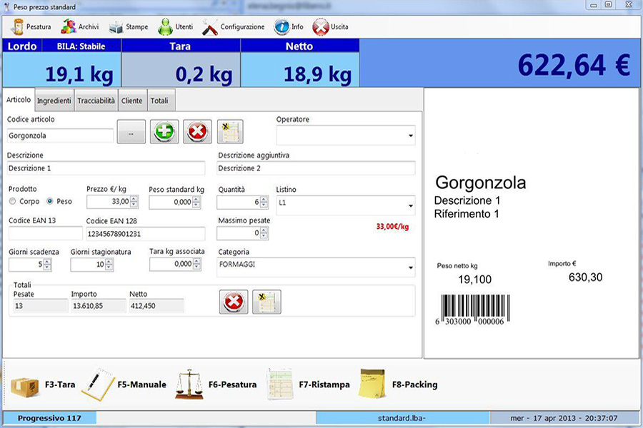 - Tracciabilità ed Archiviazione di tutte le pesate con possibilità gestione aliby-memory su terminale peso per omologazione sistema .